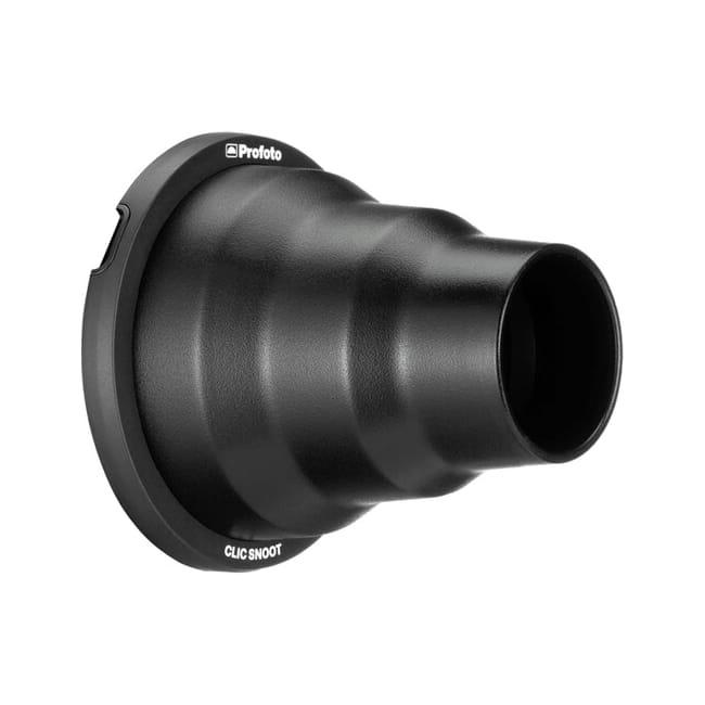 Clic Snoot 束光筒的長度和圓錐形機身可營造出平滑的邊緣過渡效果,光線亮度極強,創造邊緣清晰的聚焦光點。 使用這款塑光工具能創造強光、背照光、背景光或炫光。 憑藉磁吸介面設計,Clic Snoot 束光筒可輕鬆與扁平式 Clic 塑光工具堆疊使用。