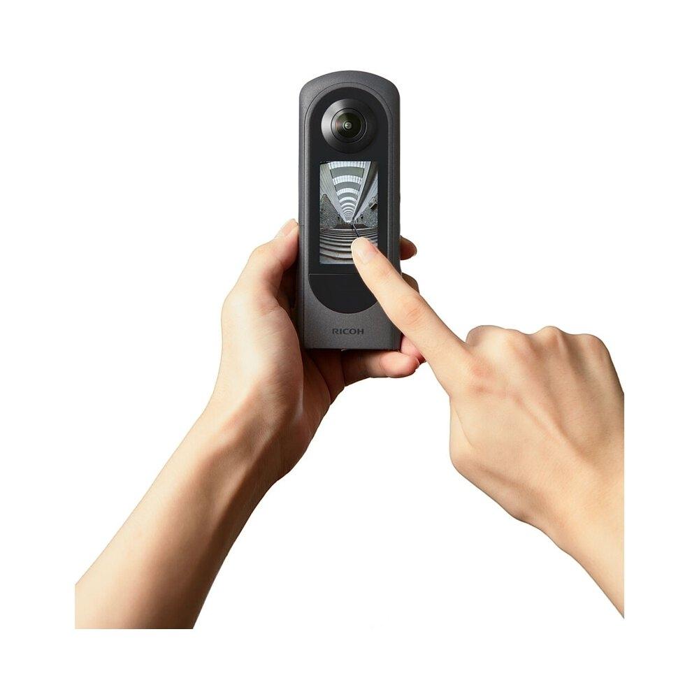 Ricoh Theta X 360° 設計上配備更大的 LCD 觸控面板,讓使用上更加便利的進階機型, 相機機身採用結合堅固性和高級感的鎂合金。搭載 2.25 英吋的 TFT 彩色 LCD(具有自動亮度調整功能),同時達成纖薄輕量的機身。\n5.7K 的視訊使 VR 的世界更加真實, 使用專用的編輯應用程式 THETA+ 輕鬆地為引人矚目的作品畫龍點睛。