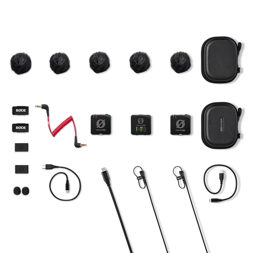 The Wireless PRO comes with everything you need to get set up and recording wireless audio right out of the box. Included are two professional Lavalier II microphones that are perfect for recording on-screen talent, as well as furry windshields for outdoor use, a pair of MagClip GO to attach your transmitters anywhere, a smart charging case and a handy accessory pack to store your lavs, cables and clips.