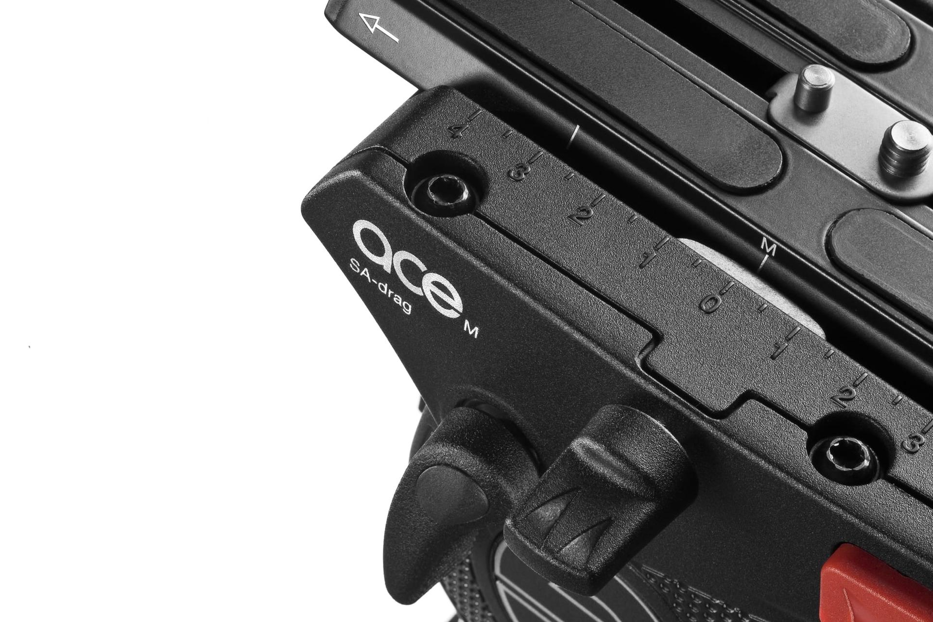 Ace M is exclusively available as a package with a 75 mm tripod and a useful transport bag. Anybody who works on uneven ground and “on location” would have an advantage with the two-stage extension tripods featuring a mid-level spreader.
