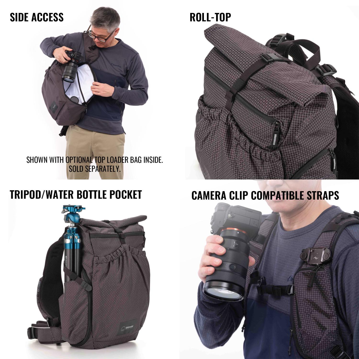 The system is modular and offers multiple use case scenarios in one package. You can use the modular Top Loader insert for protection inside the backpack, or use the Top Loader on its own as a Shoulder Bag or Sling, or attach it to the backpack's belt as a Hip Pack. The system offers a multitude of options to meet a diverse set of shooting styles and situations. STARTER KIT INCLUDES MEDIUM TOP LOADER BAG.