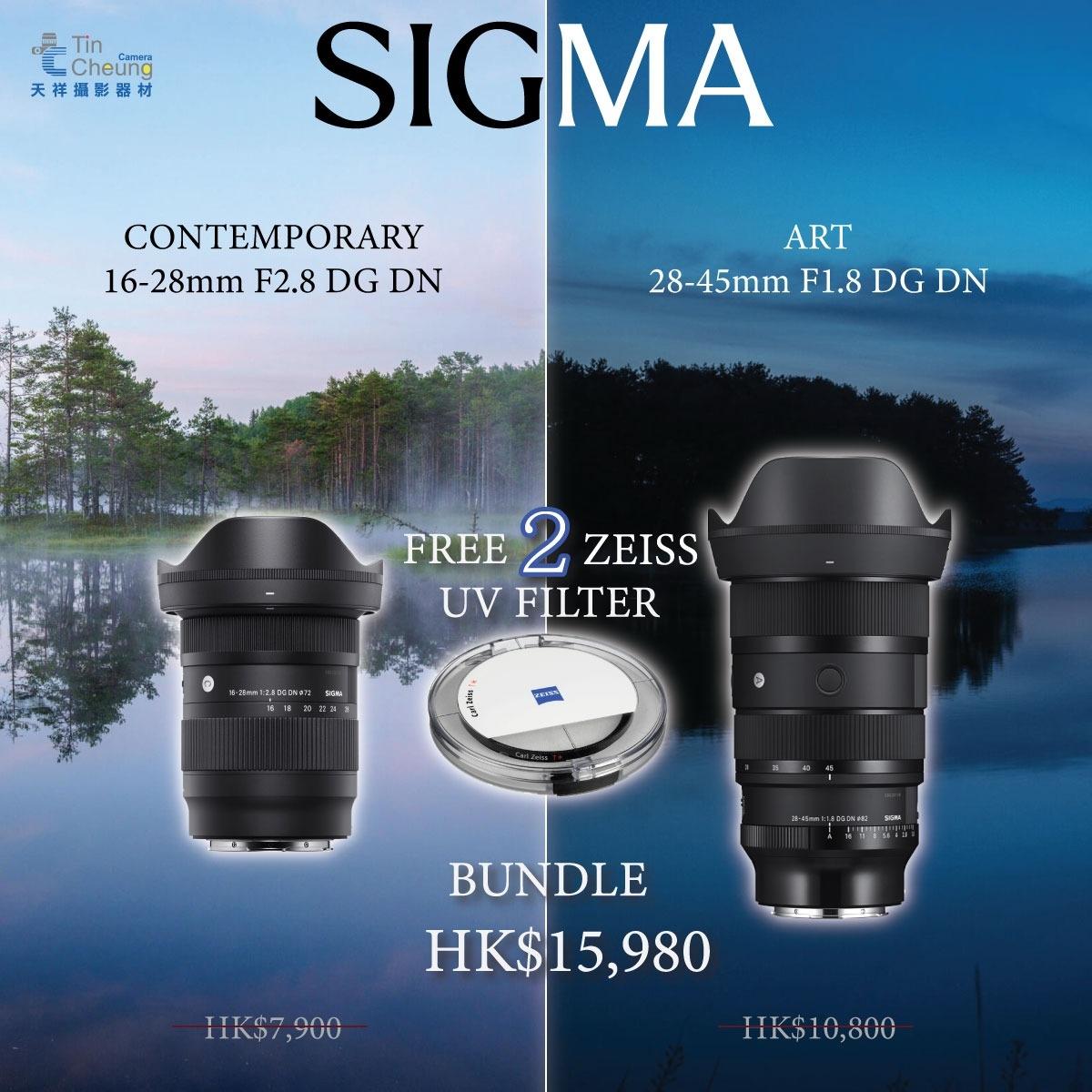 每購買Sigma 24-70mm f/2.8 DG DN II Art for Sony E/L Mount 適馬 香港行貨, Sigma 16-28mm F2.8 DG DN Contemporary + Sigma 28-45mm f/1.8 DG DN Art Bundle1件商品 , 送Zeiss T* 82mm UV Filter 蔡司 1件
