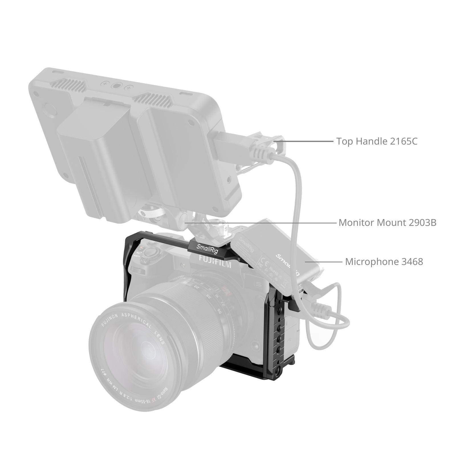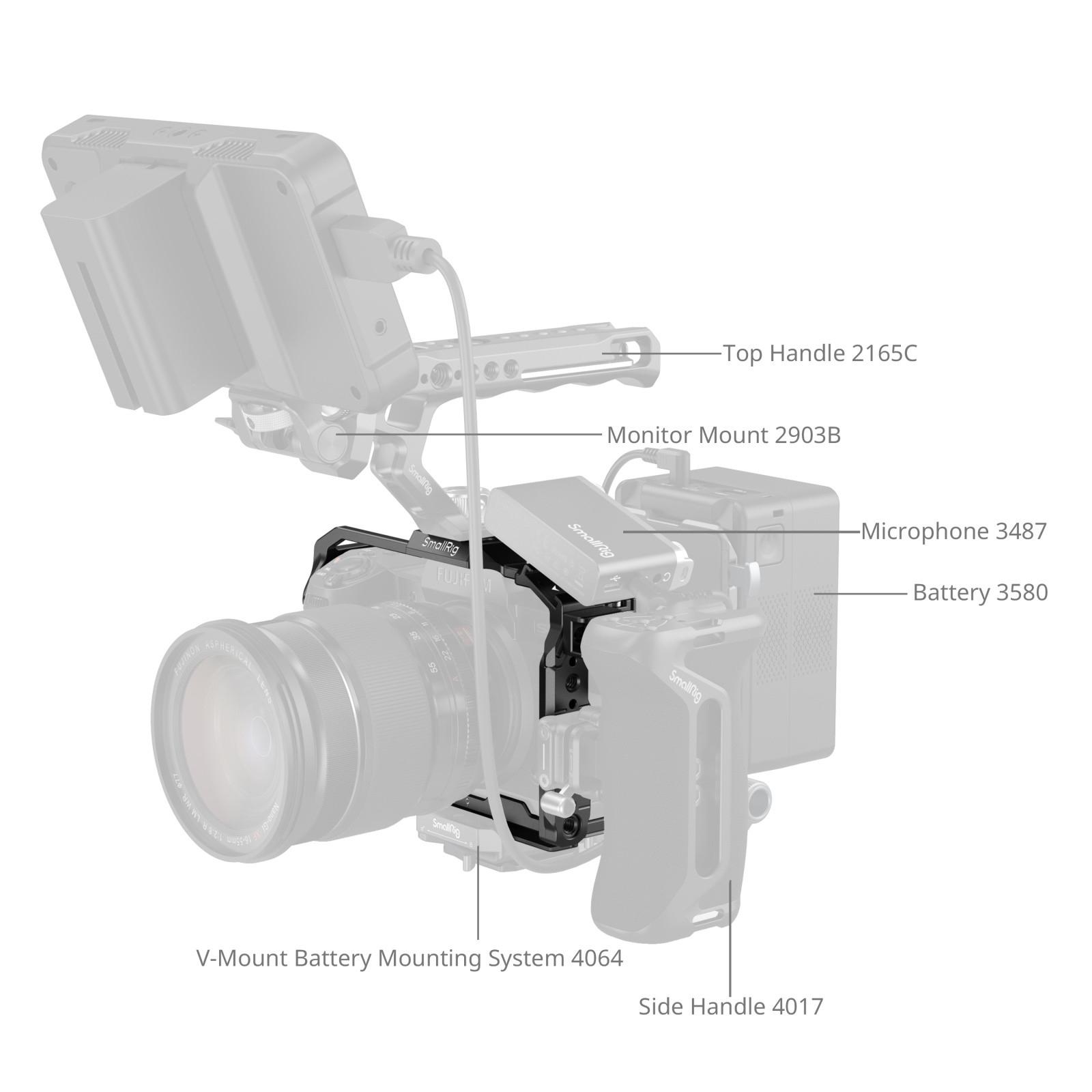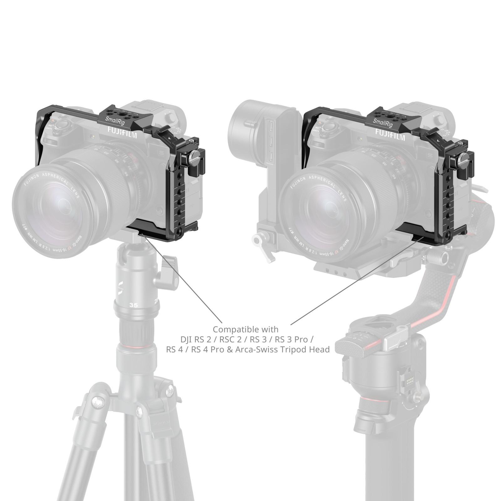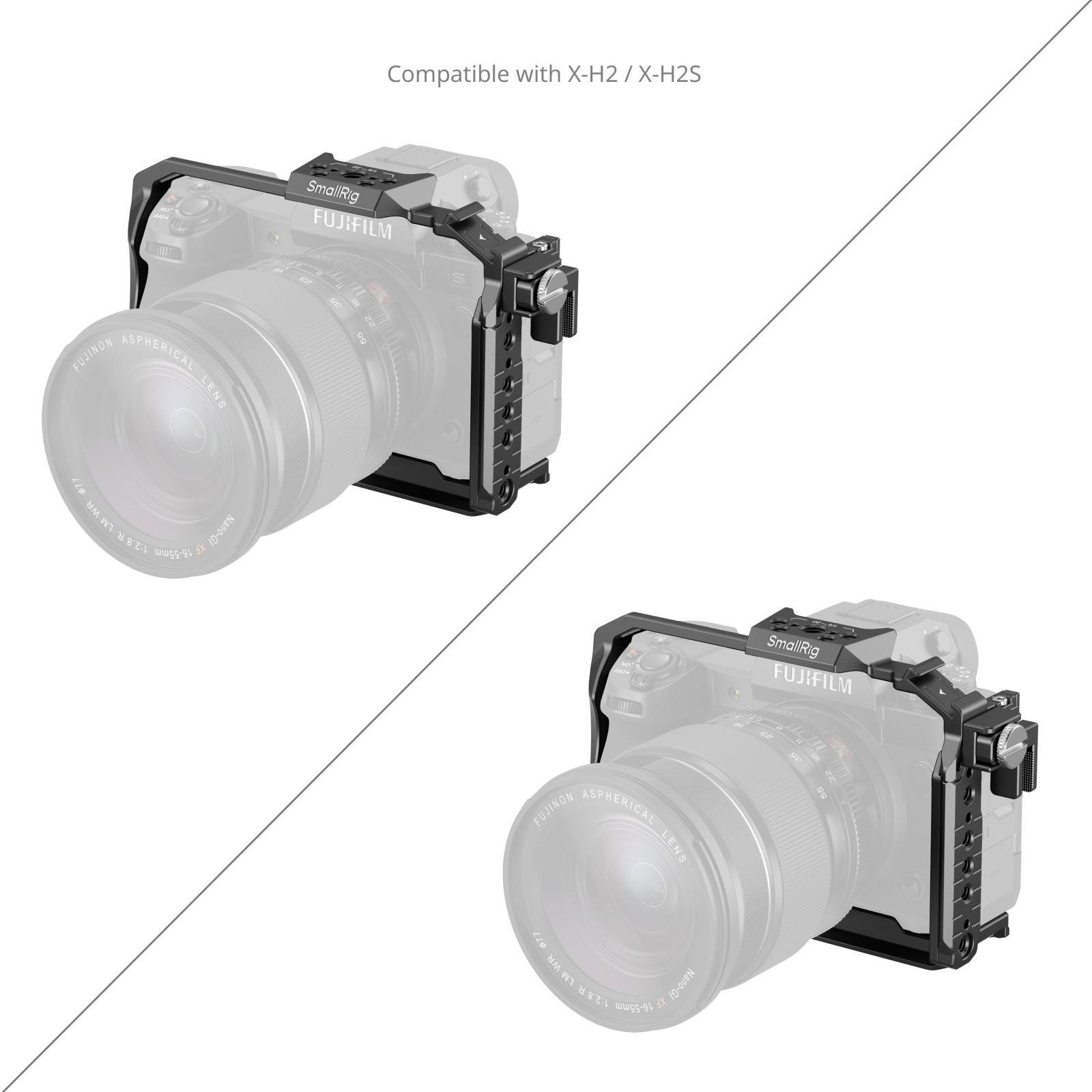 SmallRig Cage for FUJIFILM X-H2 / X-H2S 3934B is designed to provide protective features for the camera while offering a variety of expansion interfaces. The cage securely fastens the camera using a bottom 1/4"-20 screw and dual side positioning blocks, along with multiple built-in anti-slip silicone pads to prevent scratching. Also, it does not obstruct access to the camera's interfaces, LCD screen, or battery compartment.