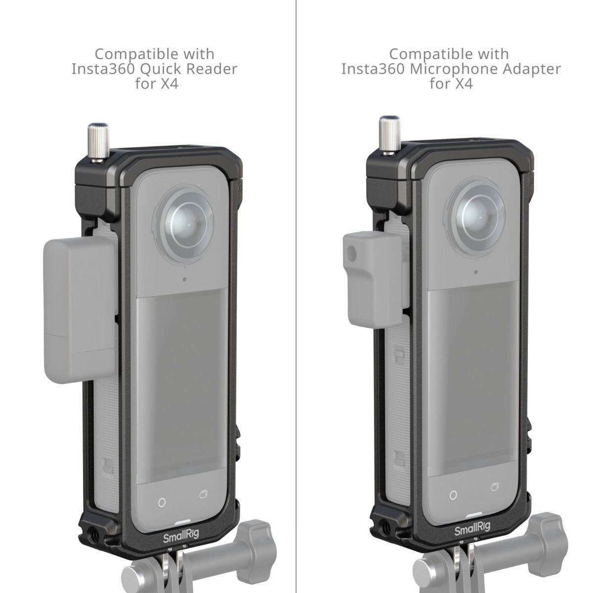 SmallRig DLC4專用擴充框4278在為相機提供保護的同時,提供豐富的介面擴充配件,讓拍攝更方便。拓展框側邊避空設計,無需拆卸cage,即可更換電池,方便省時。框框貼合相機外形,內側有矽膠墊片防止刮傷機身。相機從頂部放入框內,透過一手旋螺絲鎖緊,不用借助工具即可安裝。一側設計有冷靴接口和1/4"-20防偏轉螺紋孔,可安裝麥克風、閃光燈等攝影配件。底部運動相機接口可折疊收納,同時底部還設計有一顆1/4"-20螺紋孔,可直接外接1/4"-20螺絲腳架、自拍棒4758等。附鏡頭保護套,防止鏡頭刮傷。