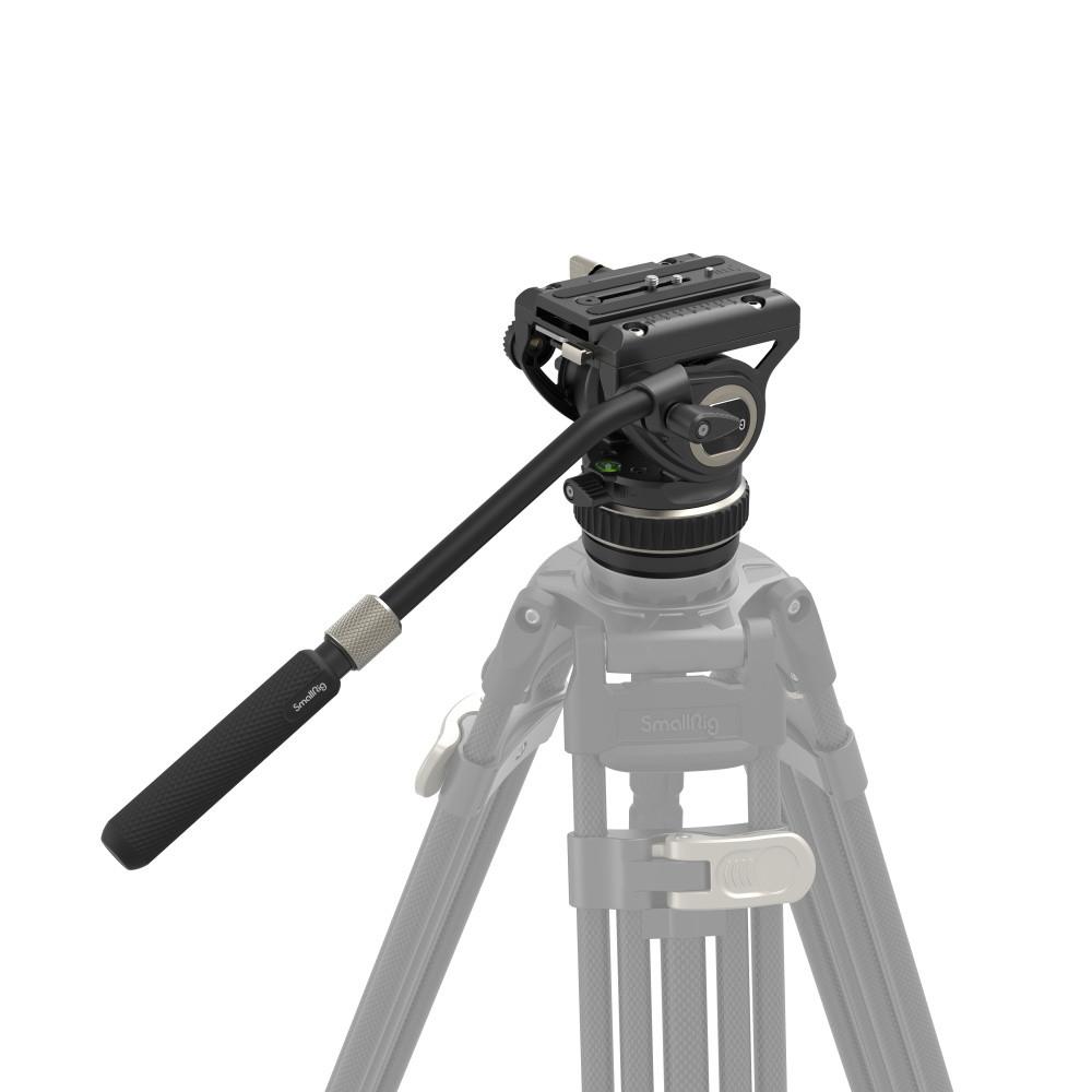 SmallRig Heavy-Duty Video Head 4165 is a professional fluid head to facilitate video shooting. The video head, featuring an adjustable step-less damping system, allows you to pan the camera smoothly at a variety of speeds you desire. When its center of gravity height is put at 55mm, the panning, and tilting counterbalance system can help precisely control the camera or other rigs weighing up to 8kg for great dynamic balance. The video head can carry as much as 10kg. It has a newly-designed snap-on quick-release plate mount, a more efficient mounting solution than traditional slide-on ones, which is DJI RS 2 / RS 3 / RS 3 Pro quick-release plate and Manfrotto quick-release plate compatible to realize a free switch between stabilizer shooting and tripod shooting. There is a detachable telescopic handle for easy storage and operation, and it suits both left-handed and right-handed users. The video head also comes with one 1/4"-20 threaded hole to support the magic arm and other accessories and a built-in wrench to help install and release the camera.