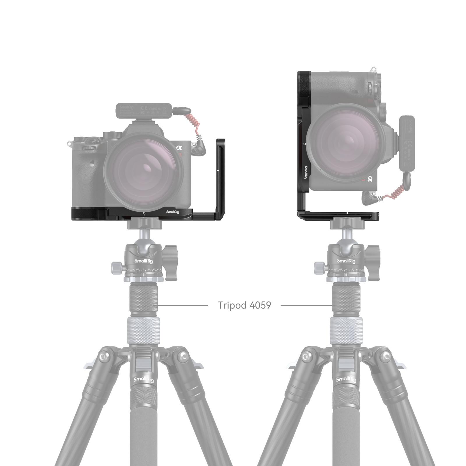 SmallRig L-Bracket for Sony Alpha 7R V / Alpha 7 IV / Alpha 7S III / Alpha 1 / Alpha 7R IV / Alpha 9 II 3660B is designed to facilitate a switch between horizontal and vertical modes and to improve grip experience. It locks the camera via one 1/4 "-20 screw at the bottom and one locating pin, with rub pads preventing scratches, and has a hinge arm at the battery door that fits the camera curve to enhance grip. Embedded select genuine leather in the baseplate integrates into the camera body. Baseplate built-in Arca Swiss quick-release plate at the bottom, compatible with Arca-type tripods or DJI RS 2 / RSC 2 / RS 3 / RS 3 Pro gimbals; Multiple 1/4"-20 threaded holes at the bottom support quick-release plates, tripods; Built-in wrist strap hole for use with Hand Strap 3848, also features a QD mount to attach the QD strap buckle, and a built-in flat-head screwdriver & hex spanner for easy installation and removal. Arca-Swiss quick-release side plate for quick switch between horizontal and vertical modes on tripod, as well as a 25mm stretchable side plate that allows cables through in vertical shooting; The side plate is extendable to allow attaching HDMI cables and adjusted back and forth to facilitate 180-degree opening and 120-degree rotation of the LCD screen of Alpha 7 IV / Alpha 7S III.
