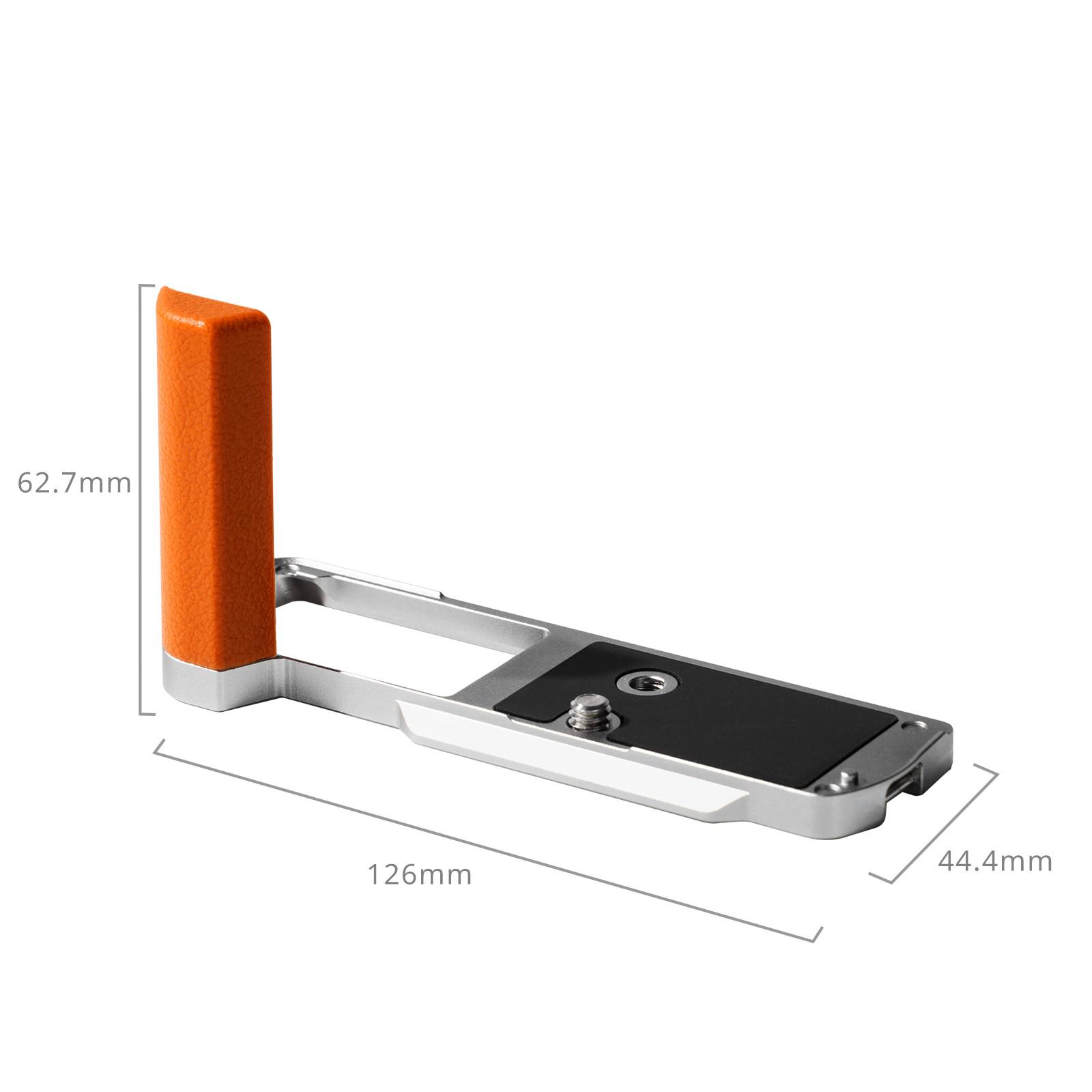 SmallRig L-Shape Handle for Panasonic LUMIX S9 (Orange Limited Edition) 5052 is designed to improve your grip on the camera. With the same texture and color scheme as the camera body, the L-shape mount plate secures the camera with a 1/4"-20 screw and a pin ensuring camera stability. The built-in Arca-Swiss quick-release plate on the base is compatible with Arca-type tripods. Also, built-in 1/4"-20 threaded holes at the bottom allow for attachment to tripods and Manfrotto-compatible quick-release plates. Equipped with strap holes, the right side is compatible with the Wrist Strap (ID 3848). Pair the reserved strap hole at the bottom left corner with the camera's upper left shoulder strap hole to install the shoulder strap for convenient vertical shooting. Attaching the strap to the upper right strap hole does not obstruct the use of the camera's LCD screen while positioning the lens downward effectively guards against impacts.