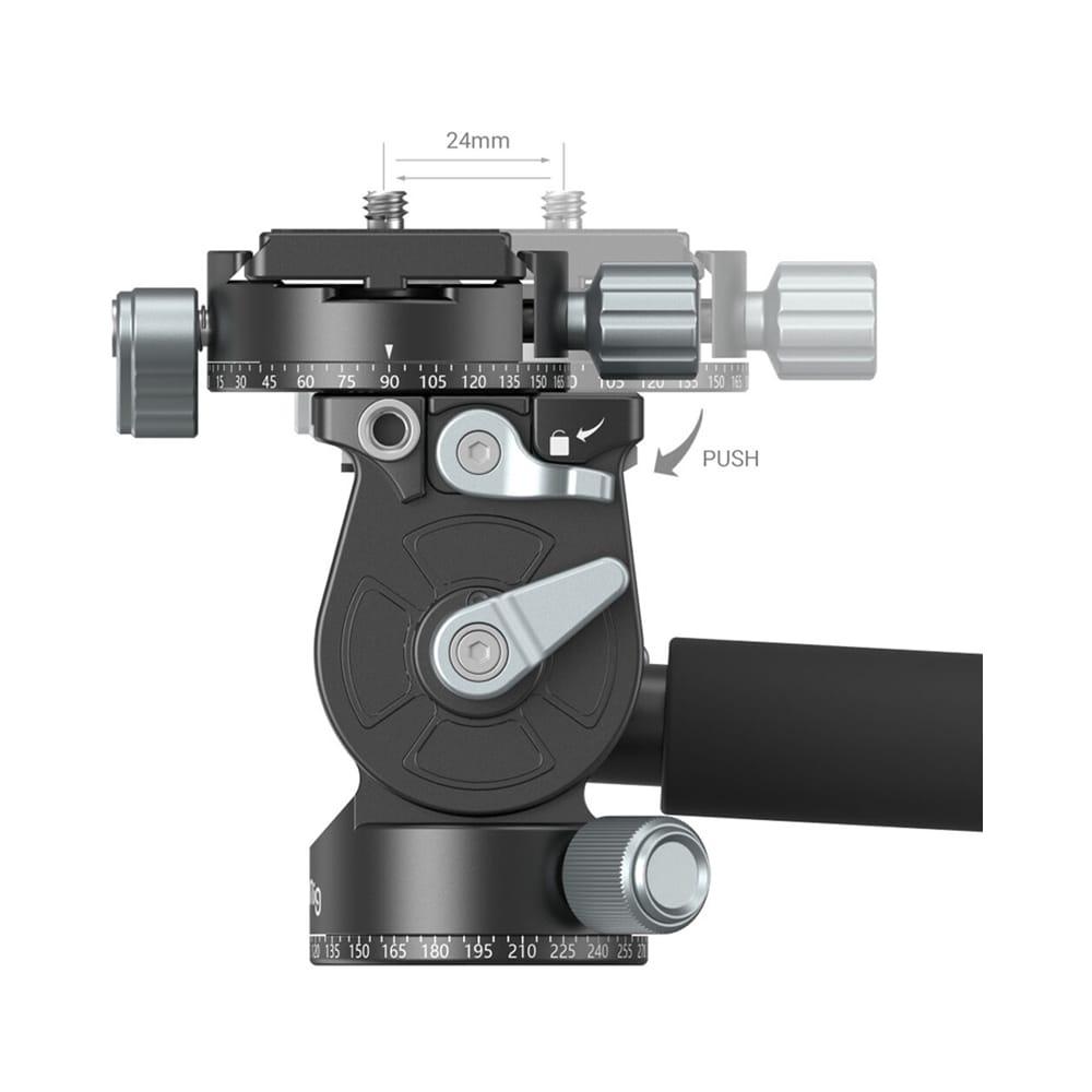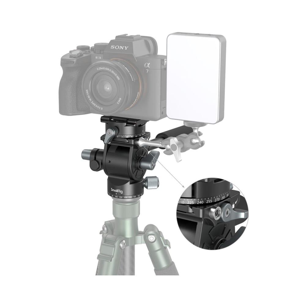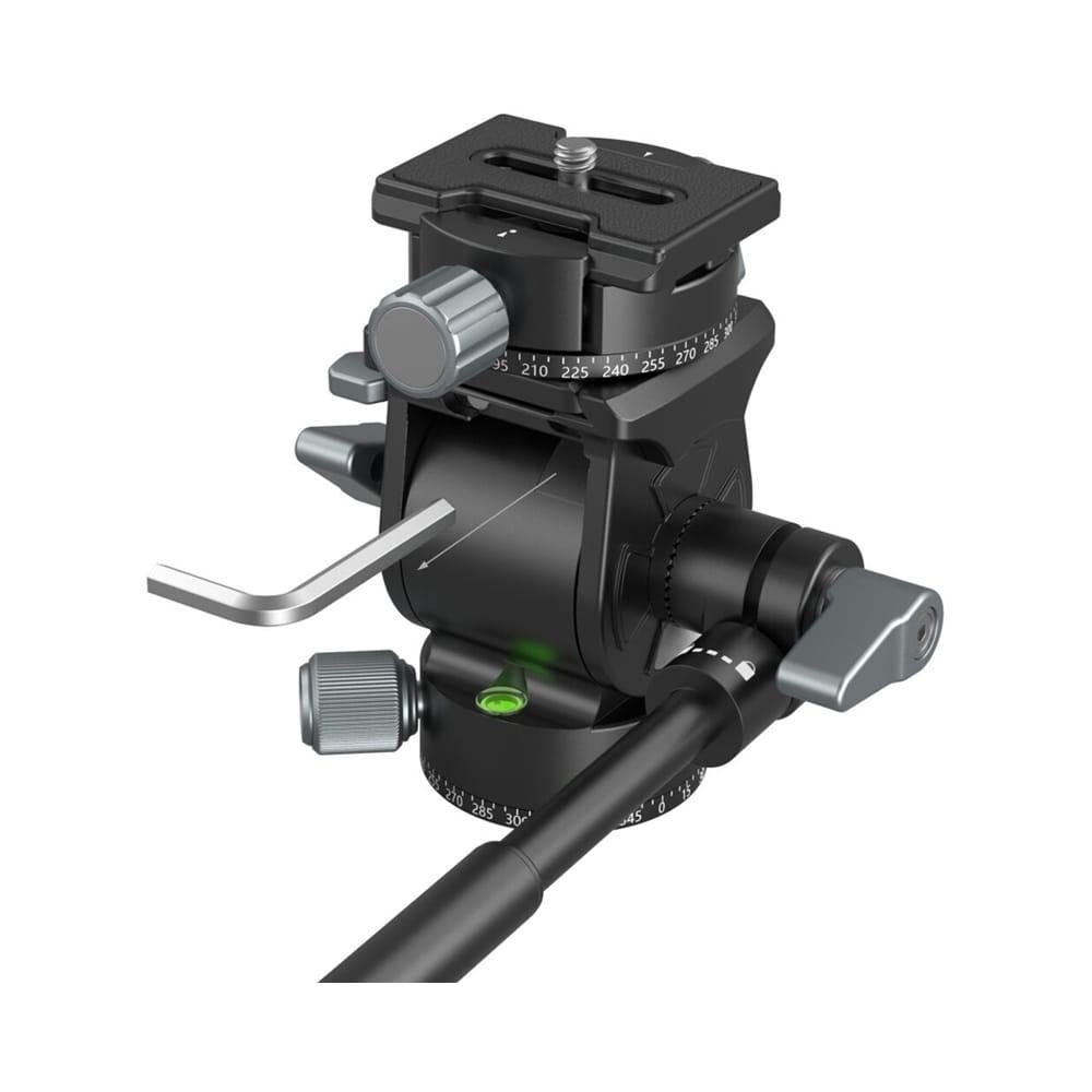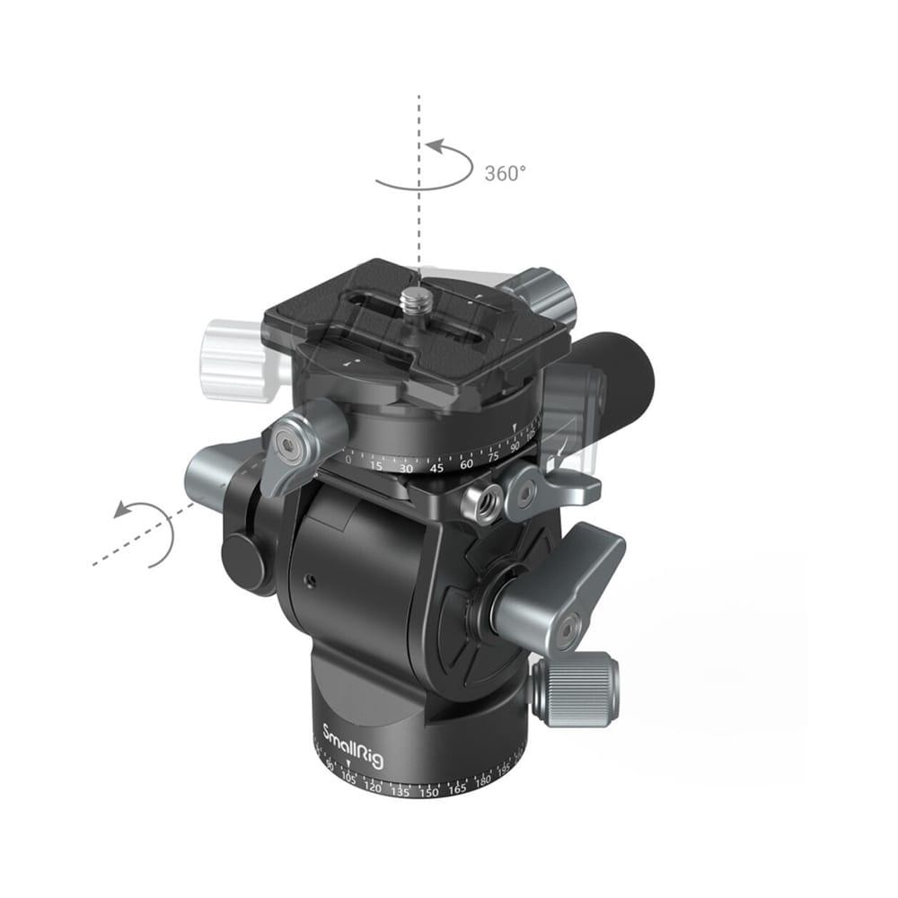 SmallRig Lightweight Fluid Video Head 3457B is specially designed for videoing and photography. It features panoramic panning and is Arca-swiss QR system compatible, allowing being fitted directly with Arca-swiss cages and L brackets. You may adjust its center of gravity back and forth by turning the side knob when using large lenses or mounting the camera horizontally. The head comes with a removable telescopic handle that supports a 360° swivel and one 1/4''-20 threaded hole to fit a magic arm for such devices as a monitor, microphone, image transmitter, or even camera. A built-in spanner is also included for removing or installing quick-release plates.