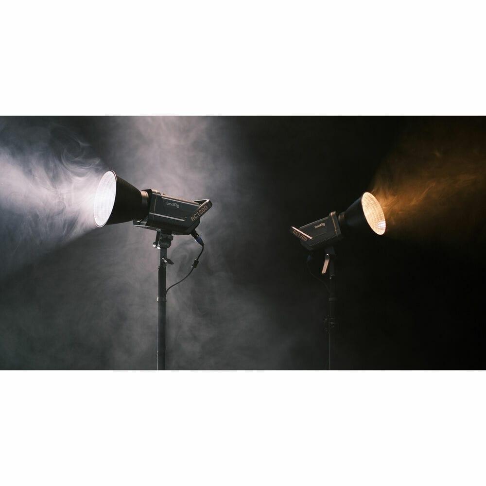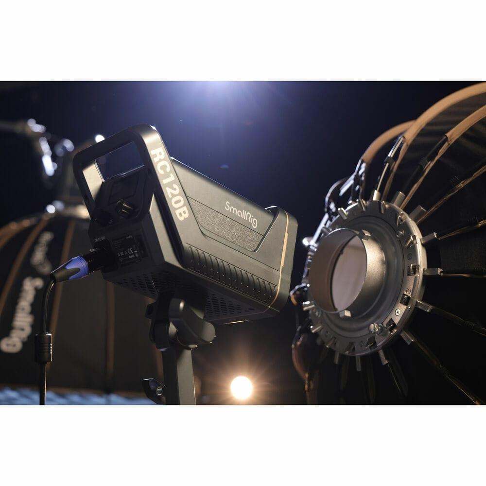SmallRig RC120B COB Light (UK) 3616, the first generation point-source LED light of SmallRig. With the latest COB technology and SmallRig's industrial design excellence, the RC120B is unique. With the included high-reflectance hyper reflector, at a distance of 1 meter (3.3 ft.), the center illuminance reaches 52,800 lux at 5600K, Far beyond the same level of products on the market. High color fidelity, CRI 95+, TLCI 96+. Standard Bowens mount allows it to compatible with more light-control accessories. 9 built-in light effects “Paparazzi, Firework, Lightning, Fault Bulb, TV, Breath, Flash, Party, Flame” and brightness can be remotely controlled by SmallGoGo.