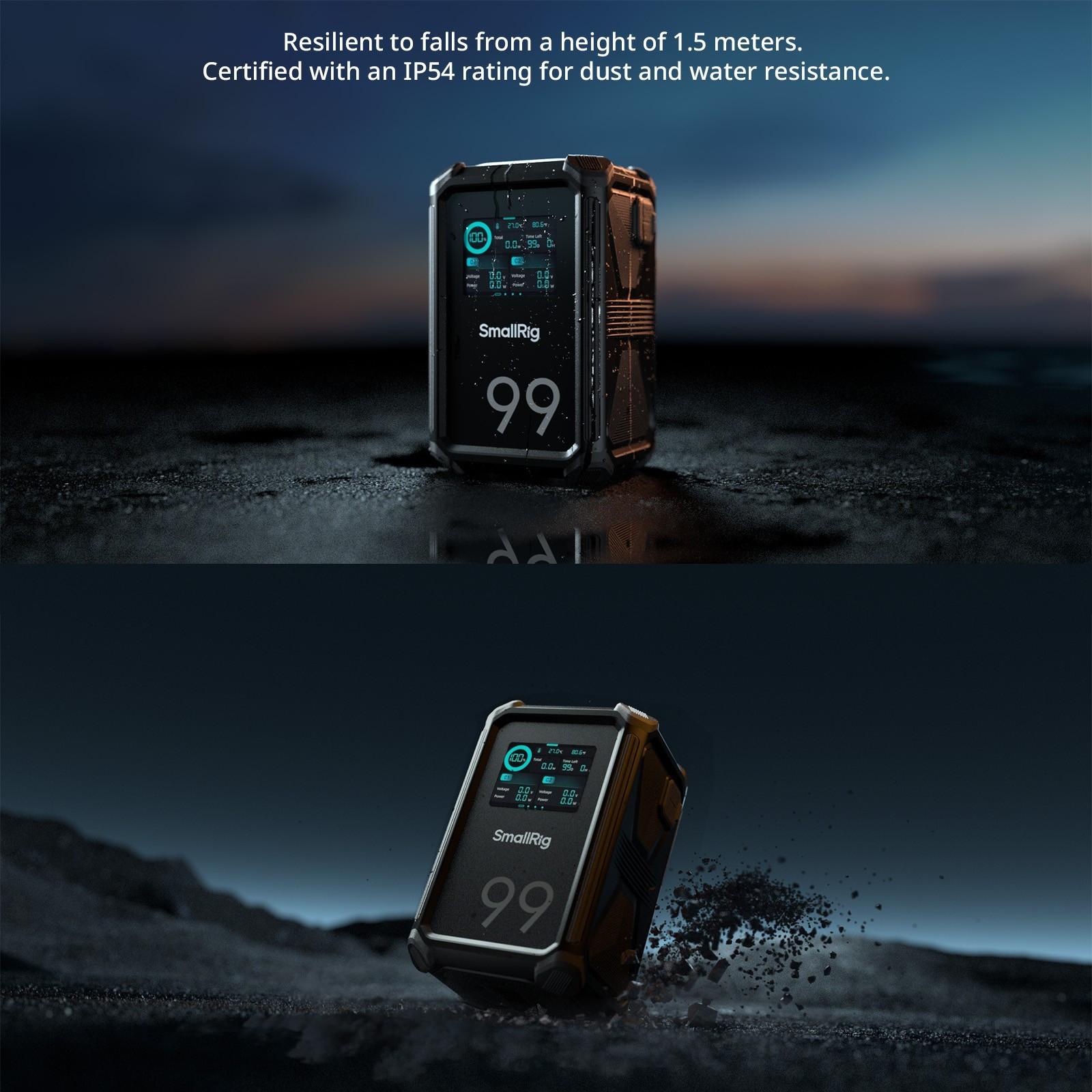 SmallRig X-Touch Smart Triple-Proof (1.5m / 4.9ft Drop-Resistant, IP54 Waterproof / Dustproof) V-Mount Battery X99 4984 sets a new standard for professional power solutions by integrating smart technology, rugged protection, high-power fast charging and multi-port versatility, making it ideal for demanding shooting environments.
