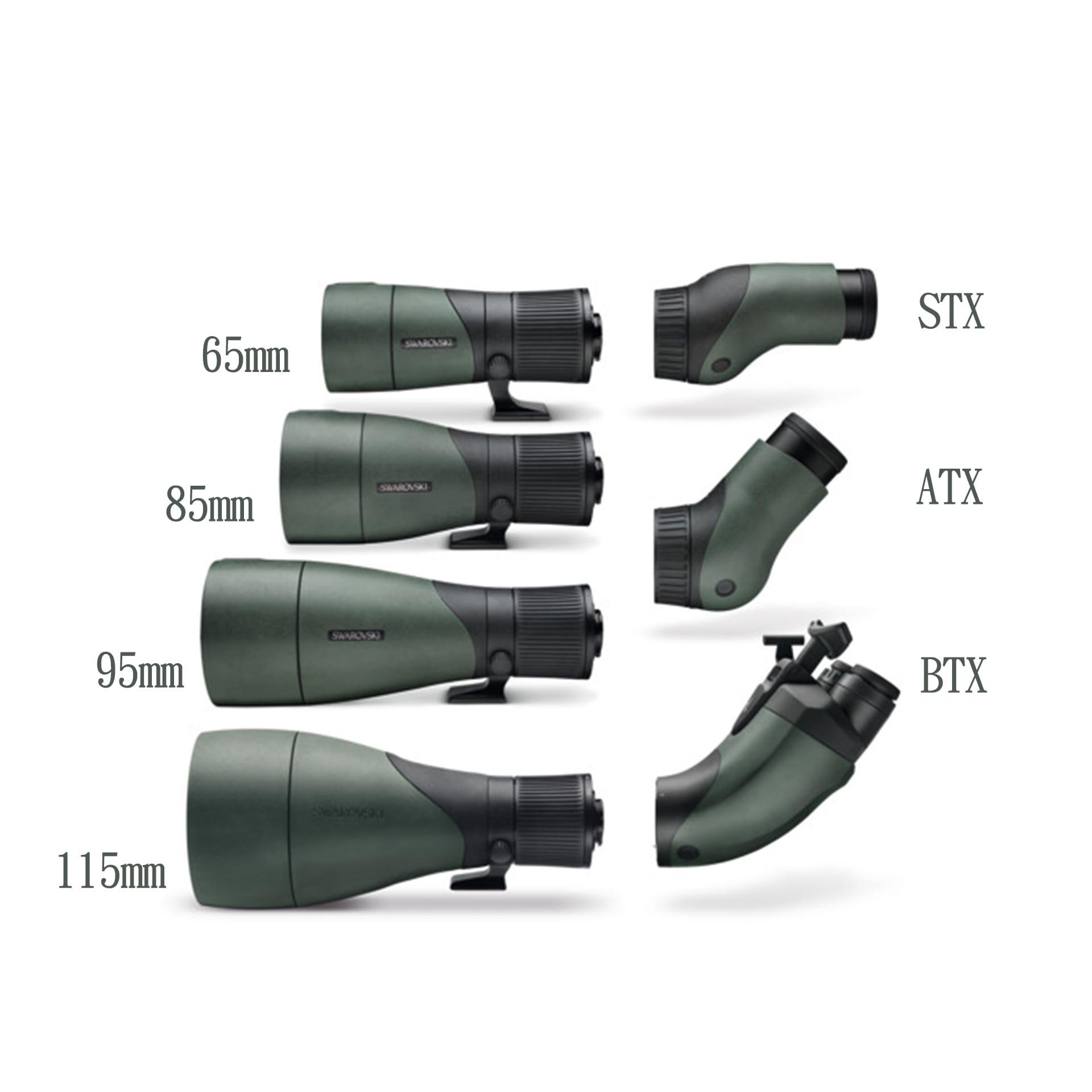 • The BTX Modular uses the 115, 95 mm, 85 mm and 65 mm Objectives of the current SWAROVSKI OPTIK ATX/STX Modular system.