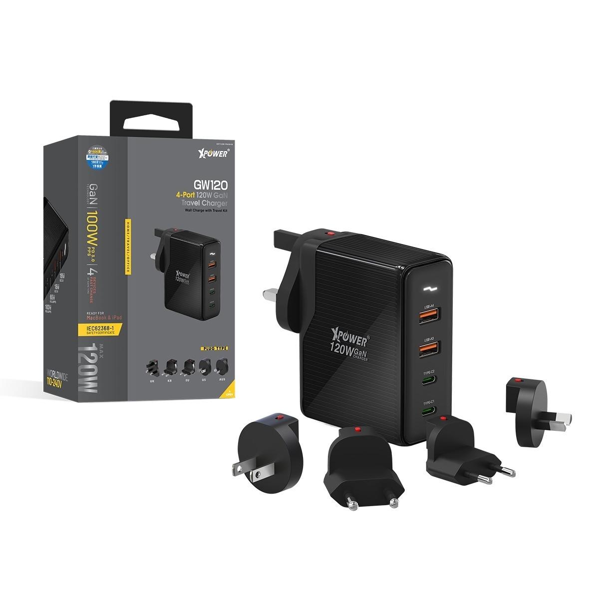 XPower GW120 120W 4輸出 PD 3.0/PPS/QC GaN旅行充電轉插器