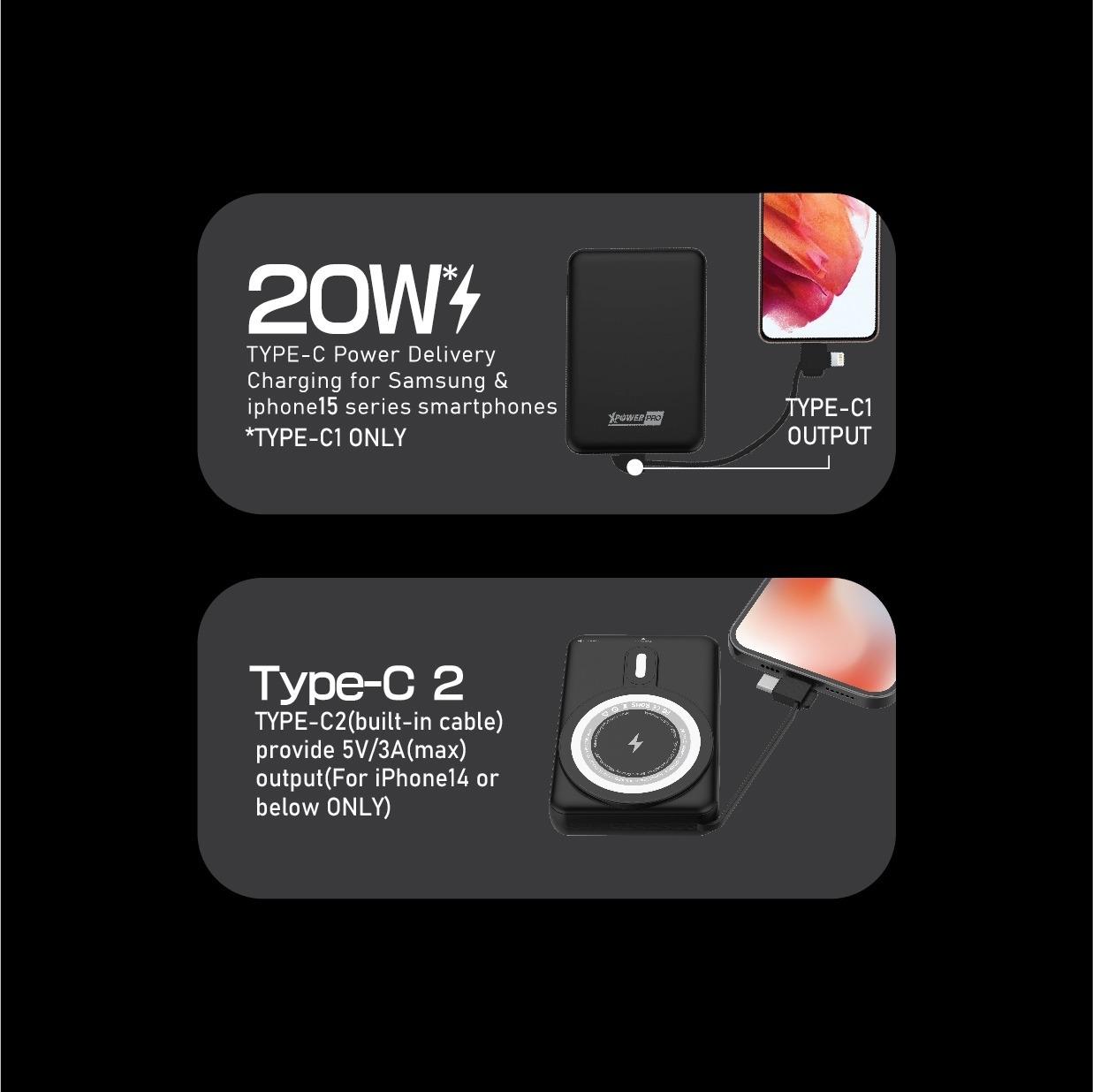 • Type-C1output :  為iPhone 15 /Samsung 等裝置提供20W的最佳充電效果