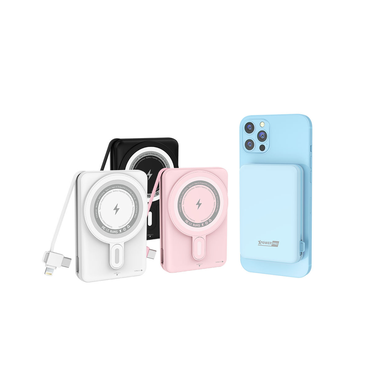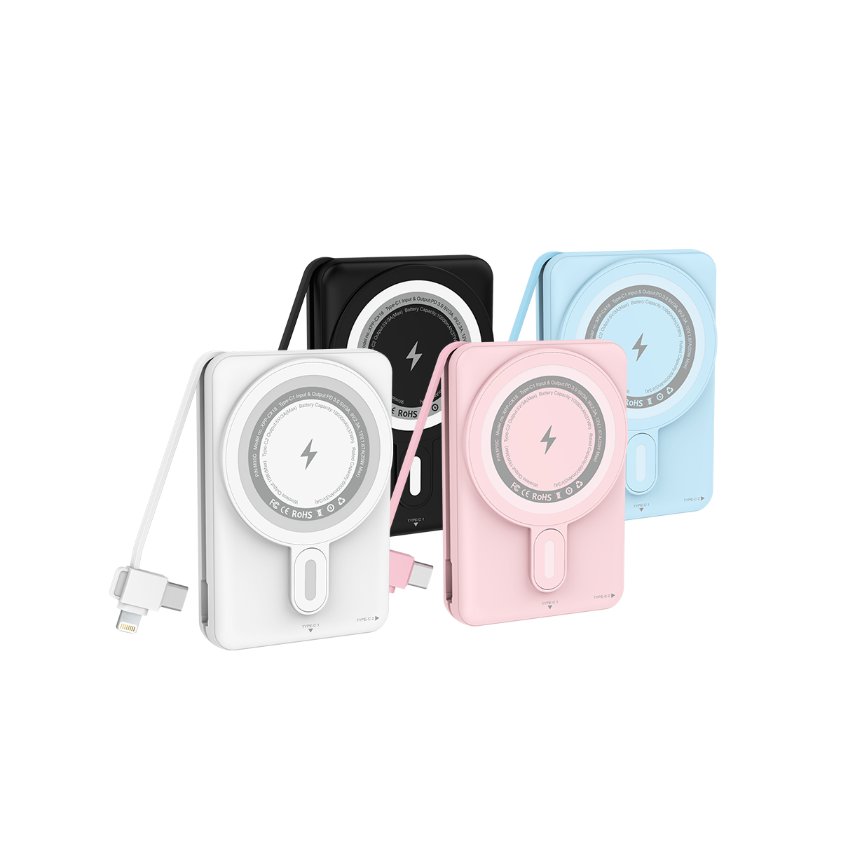 • 3種充電方法: 磁吸無線快充(15W) / Type-C插口(20W PD 3.0) / 內置線(5V/3A)