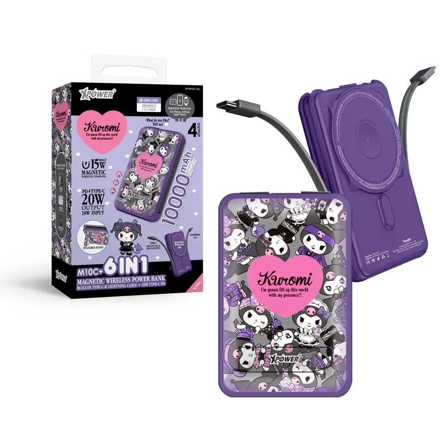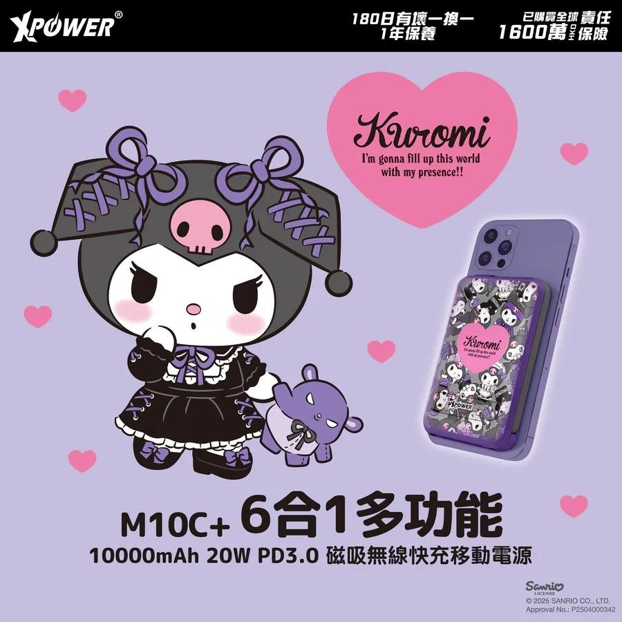 XPower x Sanrio Kuromi M10C+ 6合1 10000mAh多功能迷你20W PD3.0+ 磁吸無線快充移動電源