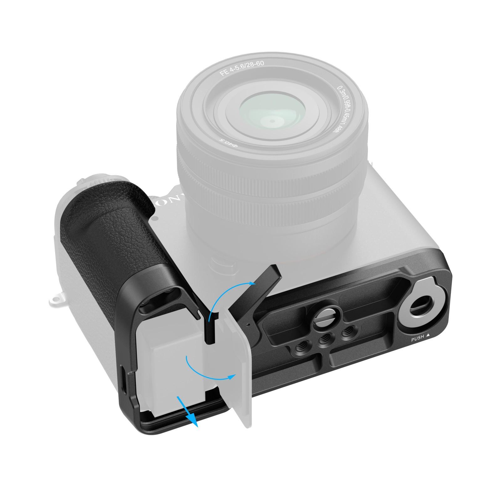 SmallRig L-Shape Mount Plate with Silicone Handle for Sony Alpha 7C II / Alpha 7CR 4797B is designed to improve the camera grip. The L-Shape Grip mounts to the camera with a 1/4"-20 screw at the bottom, and the built-in silicone pads prevent scratches. The texture and color of the grip perfectly match with Sony Alpha 7C II / Alpha 7CR. The built-in Arca-Swiss quick-release baseplate allows for easy and fast Arca-type tripod assembly and disassembly, while a strap hole is compatible with wrist straps (ID 3848), and a magnetic spanner for easier disassembly and assembly.